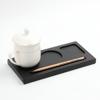 ที่ใส่ถ้วยหนัง PU และถาดแก้วกลมสำหรับน้ำยาบ้วนปากดีไซน์สบายๆสำหรับโรงแรม